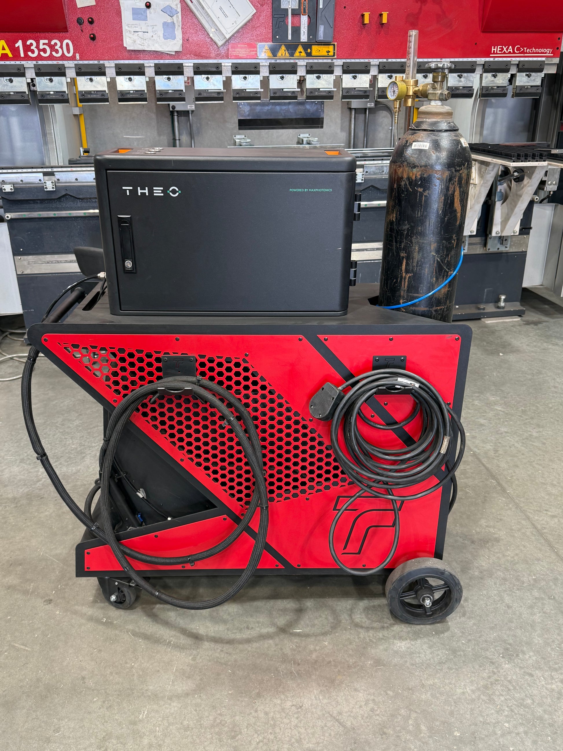 This is a laser cart we designed for our Theo Laser. We will provide the dxf's and pdf's to build this laser welding cart. In our PDFs there will be a list of parts that you will need to purchase to make the cart.